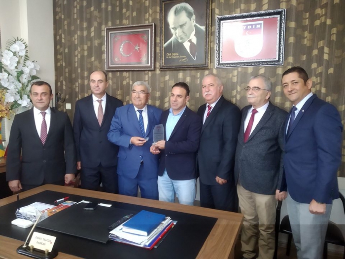 Efeler Şehiriçi Özel Halk Otobüsleri Kooperatifi Başkanı Okan Yalçın'da ödül alan şoför Harun Çağlayan'ı tebrik etti.