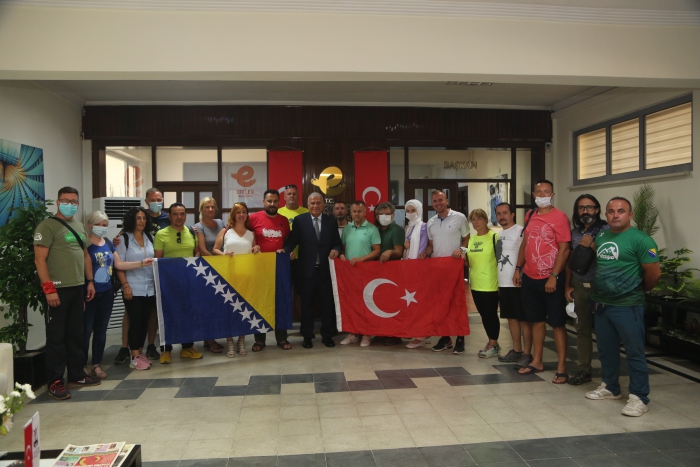 Aydın Ayyıldız Doğa Sporları Kulübü'nün kardeş kulübü Vedro Dağcılık Kulübü, 9 kişilik Boşnak sporcu heyeti ile Efeler'e nezaket ziyareti gerçekleştirdi. Efeler Belediye Başkanı Mehmet Fatih Atay'la Efeler Belediyesi'nde bir araya gelen her iki kulübün sporcuları ve yöneticileri Başkan Atay'a ilçeye kazandırdığı olimpik tırmanma duvarı için teşekkür etti. Spor ve doğa üzerine fikir alışverişinde bulunulan toplantının ardından Başkan Atay ve sporcular birbirlerine hediye sundu ve toplu hatıra fotoğrafı çektirdi.