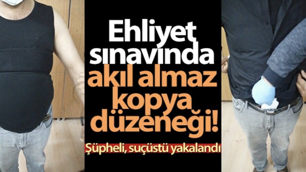 Mersin'in Silifke ilçesinde girdiği ehliyet sınavında kopya çekmek için korsesinin içerisine kamera, cep telefonu, modem ve kulaklık yerleştirerek özel düzenek hazırlayan şüpheli, suçüstü yakalandı.