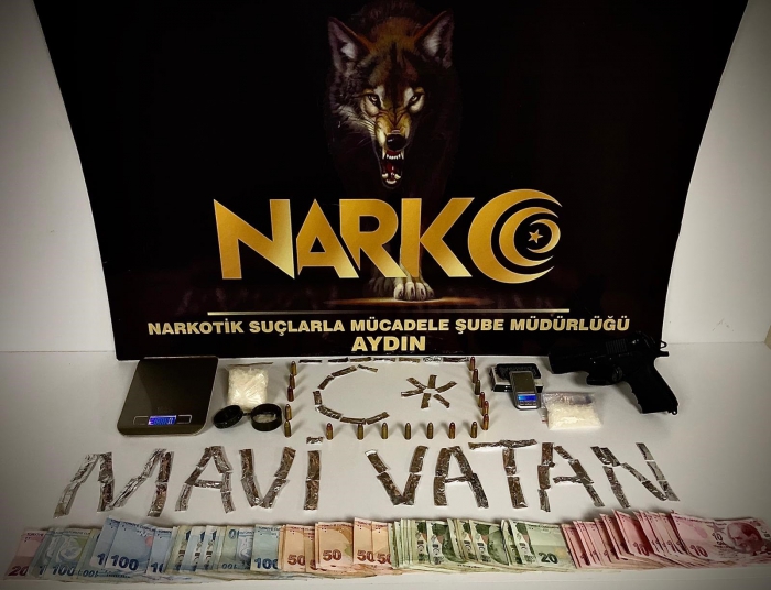 Edinilen bilgiye göre, Aydın İl Emniyet Müdürlüğü Narkotik Suçlarla Mücadele Şube Müdürlüğü ekipleri, Ilıcabaşı ve Çeştepe Mahallesi'ndeki iki ayrı adrese operasyon düzenledi. Operasyonlarda evlerin mutfak ve yatak odası bölümlerinde dolap arkalarına ve yorgan aralarına saklanmış 125,10 gram sentetik kannabinoid, 118,14 gram metamfetamin, 2 adet hassas terazi, uyuşturucu madde paketlemede kullanılan materyal, uyuşturucu satışından elde edildiği düşünülen 4 bin 330 TL, bir adet ruhsatsız tabanca ve bu tabancaya ait 18 adet dolu fişek ele geçirildi. Her iki operasyonda da gözaltına alınan O.Ç. ve B.K. isimli şüpheliler sevk edildikleri mahkeme tarafından tutuklanarak cezaevine gönderildi.