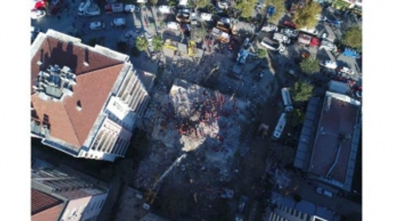 Rıza Bey Apartmanı alanında yapılan arama kurtarma çalışmalarının son durumu ise havadan görüntülendi. Kurtarma ekipleri zaman zaman çalışmaları durdurarak enkaz altına sesleniyor. Bu sırada iş makineleri ve tüm jeneratörler kapatılıp dikkatle dinleme gerçekleştiriliyor.