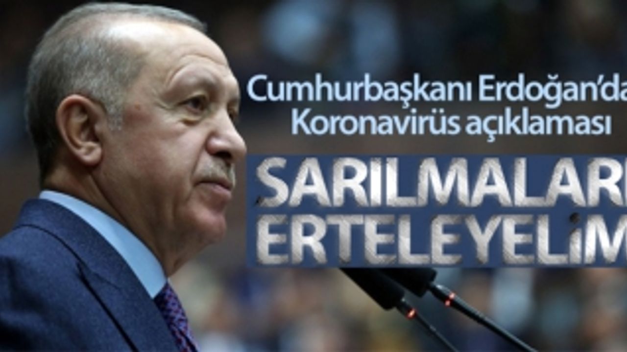 Cumhurbaşkanı Recep Tayyip Erdoğan, Koron virüs ile ilgili açıklamalarda bulundu. Korona virüsü hakkında konuşan Cumhurbaşkanı Erdoğan, 'Bu ara sarılmaları öpüşmeleri erteleyelim' dedi.