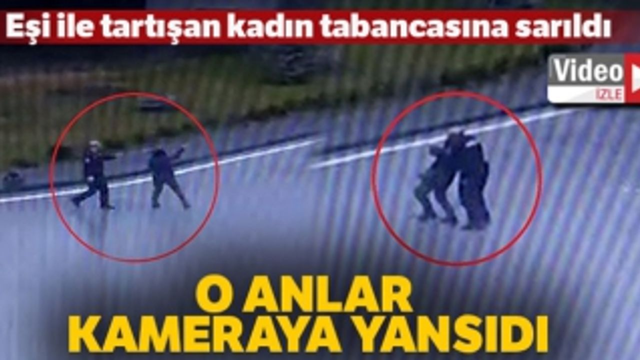 Çorum'da eşi ile tartışan bir kadın, çantasından çıkardığı tabancayla bir el ateş açarak çevredekilere korku dolu anlar yaşattı. Polis memuru ise bir süre sarf ettiği çabanın ardından kadının elindeki silahı aldı. O anlar güvenlik kameralarınca görüntülendi.