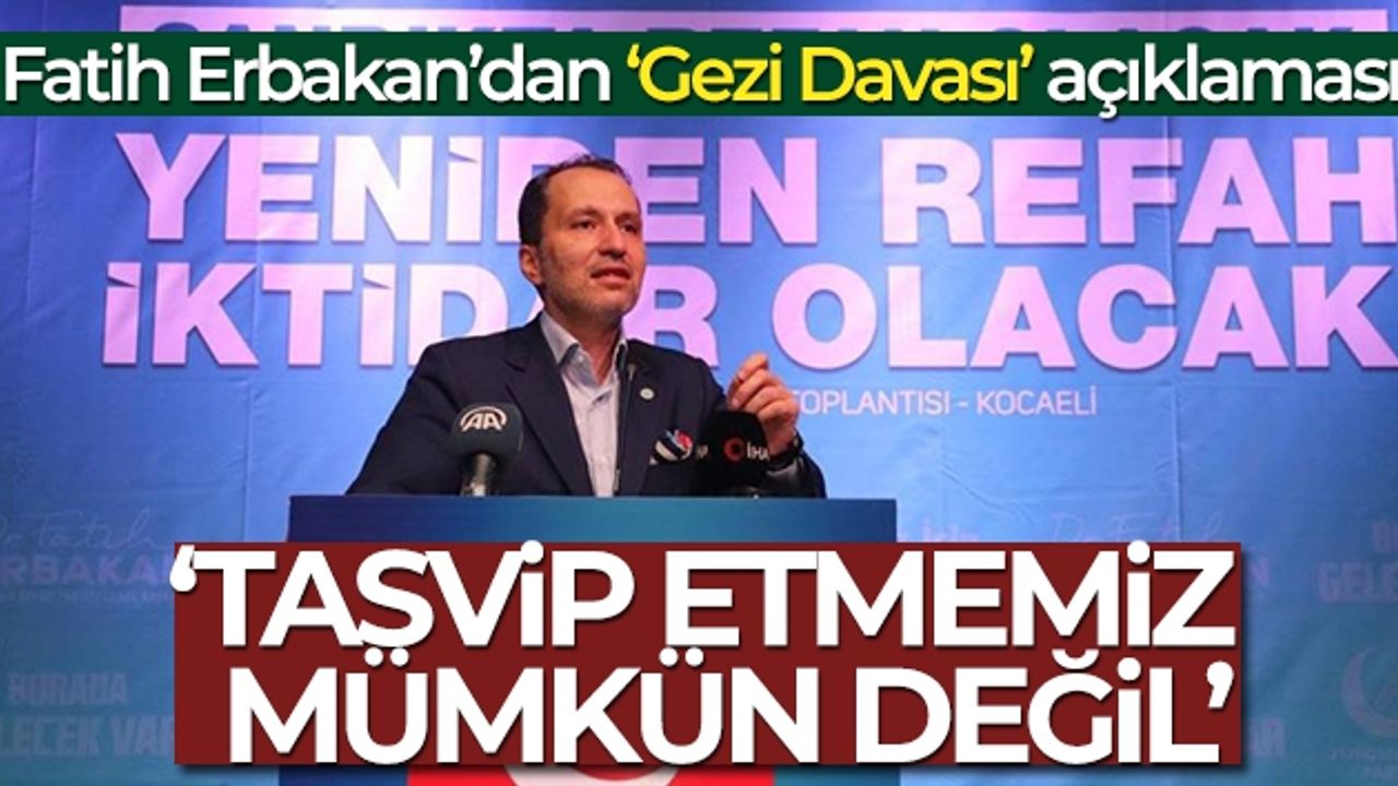 Yeniden Refah Partisi Genel Başkanı Fatih Erbakan, Türkiye'de dış bağlantılı Gezi olayları gibi kalkışmaları tasvip etmelerinin mümkün olmadığını, davada verilen kararların da adil olup olmadığını söylemek için gerekçeli kararın beklenmesi gerektiğini ifade etti.