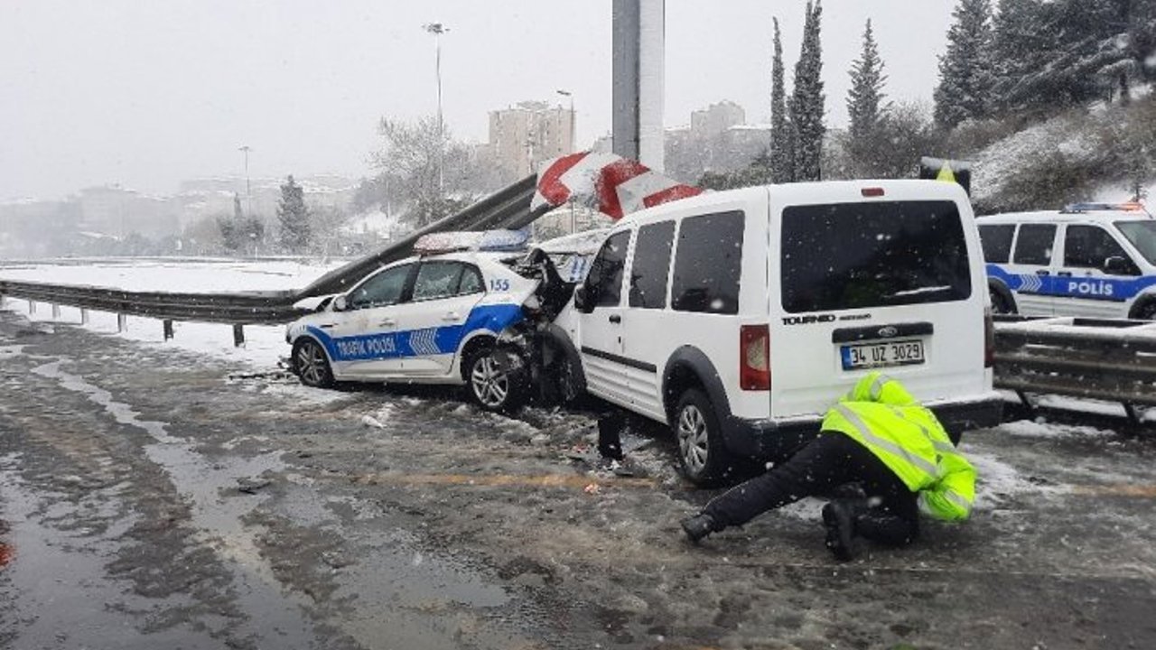 Kaza, saat 12.15 sıralarında Fatih Sultan Mehmet Köprüsü´nün Etiler girişinde meydana geldi. Araçlarıyla Ankara istikametine seyir halinde olan sivil polis ekibi, kayganlaşan yolda kayarak uygulama noktasında bekleyen bir trafik polisi aracına arkadan çarptı. Çarpmanın etkisiyle park halindeki araç, önündeki bariyerlerin altına girdi. Kazada trafik polis ekibi aracındaki 2 ve sivil ekip aracındaki 1 polis memuru yaralandı. Olay yerine çok sayıda polis ve ambulans sevk edildi. Yaralılardan birinin kazayı hafif sıyrıklarla atlattığı görülürken, diğer 2 polis memuru ambulansla hastaneye kaldırıldı. Yaralı polislerin hayati tehlikelerinin bulunmadığı öğrenildi.