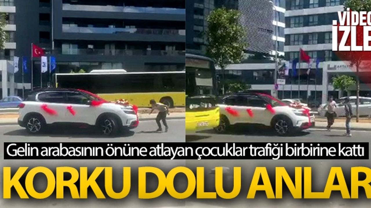 Ümraniye Küçüksu Caddesi'nde nikah sarayı yakınlarında, geçtiğimiz günlerde yolda seyir halinde bulunan gelin arabasını gören çocuklar koşarak aracın önünü kesti. Yabancı uyruklu olduğu iddia edilen çocuklar, akan trafikte canlarını hiçe sayarak araçların arasında koşturmaya devam etti.