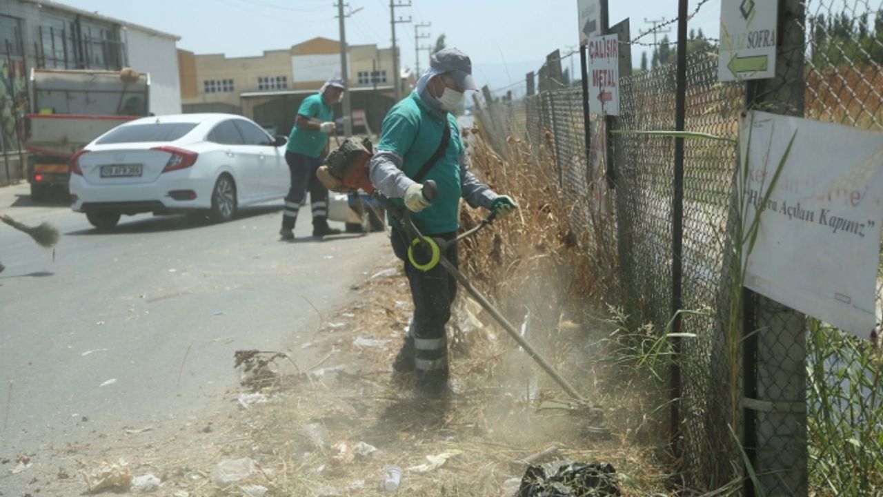 Efeler Belediyesi, hava sıcaklığının rekor seviyelere yükseldiği bu günlerde, olası bir yangın ihtimaline karşı ilçe genelinde kuru ot temizliği çalışmalarına hız verdi. Bu kapsamda görev alan Efeler Belediyesi Park ve Bahçeler Müdürlüğü ekipleri, oldukça geniş bir alana sahip olan Aydın Toptan Gıda Çarşısı ve İş Merkezi´nde kuru ve yabani ot temizliği işlerini yaptı. Efeler Belediyesi´nce gerçekleştirilen özverili çalışmalar sayesinde nezih bir kimliğe sahip olan çarşıda yapılan hummalı çalışmalar, rutin olarak sürdürülüyor.