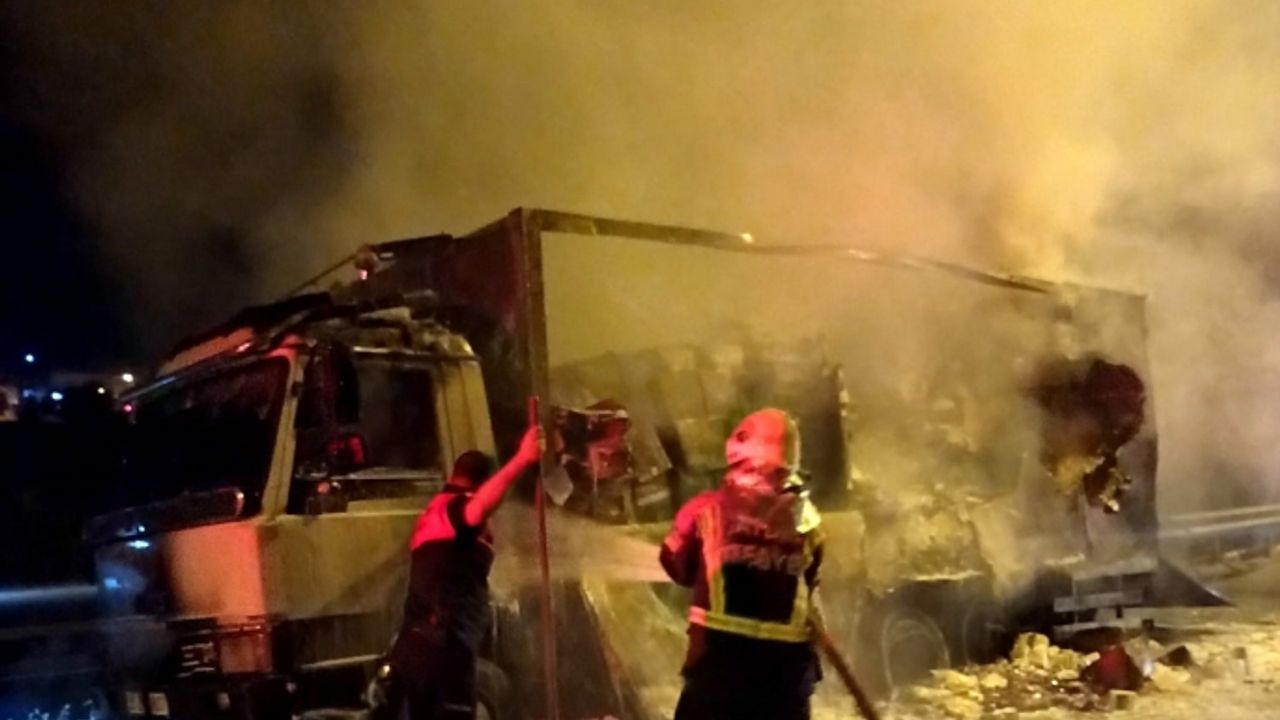 Gıda malzemesi yüklü kamyon küle döndü