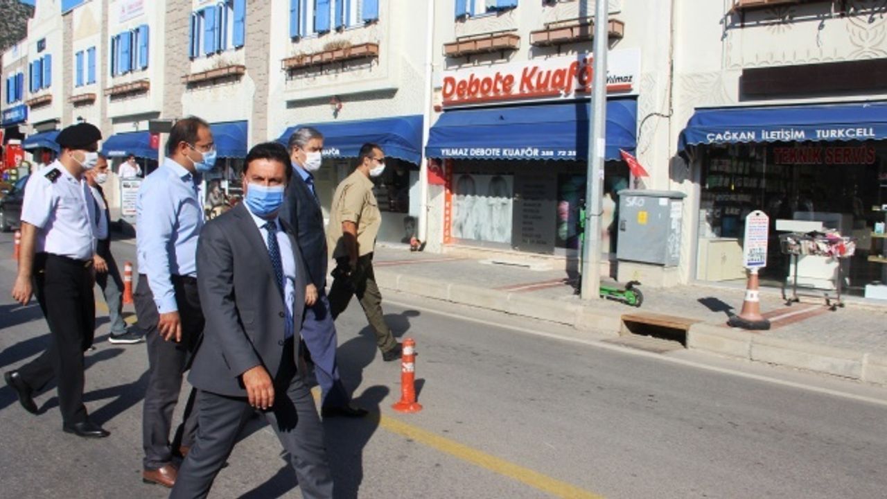 Ortakent'te maske, mesafe ve hijyen konusundan denetim yapan ekiplere Bodrum Kaymakamı Bekir, Yılmaz, Bodrum Belediye Başkanı Ahmet Aras katıldı. Esnafı teker teker ziyaret ederek maske, mesafe ve hijyen konusundan uyarılarda bulunan Kaymakam Yılmaz esnafın hassasiyetini taktir etti. Tüm dükkanlarda el dezenfekte losyonları, esnafta maske, kafelerde mesafeyi gören Kaymakam Yılmaz esnafı hem takdir etti hem de uyarılarda bulundu. Başkan Aras Ortakent esnafının kurallara uymayan kimsenin olmaması karşısından esnafa teşekkürlerini sundu.
