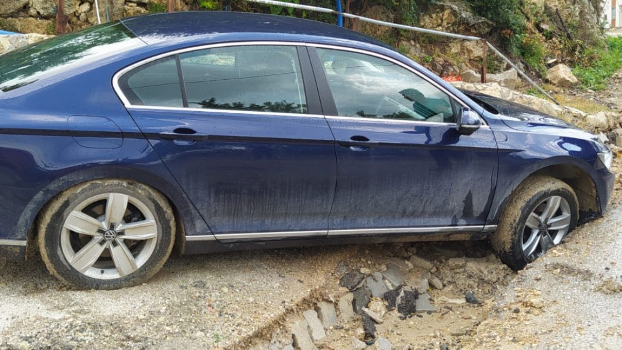 Sabah saatlerinde etkili olan yağış nedeniyle bazı mahallelerde toprak kayması yaşanırken, Kapısuyu Mahallesi'nde yol çöktü. Araçlar oluşan çukura düşerek mahsur kaldı.