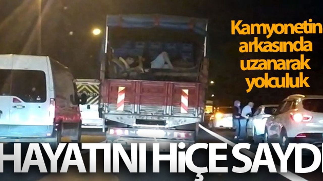 Olay, dün akşam saatlerinde E-5 Karayolu Edirne istikameti Beylikdüzü mevkiinde meydana geldi. Edinilen bilgiye göre, seyir halinde olan eşya yüklü kamyonetin arkasında bulunan bir kişi, hiç bir önlem almadan oradaki eşyaların üzerine uzanarak seyahat etti. Hem uzanan hem telefonundan gözünü ayırmayan kişinin tehlikeli yolculuğu yürekleri ağza getirdi. Kamyonetin arkasındaki tehlikeli yolculuk ise bir vatandaş tarafından cep telefonu ile görüntülendi. Trafikte seyir halinde olan kamyonet ise bir süre sonra gözden kayboldu.