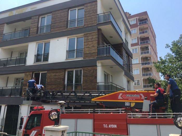 Aydın'ın Efeler ilçesinde boş bir apartmana giren hırsız, polis ve itfaiye ekiplerince saklandığı çatı katında kıskıvrak yakalandı.