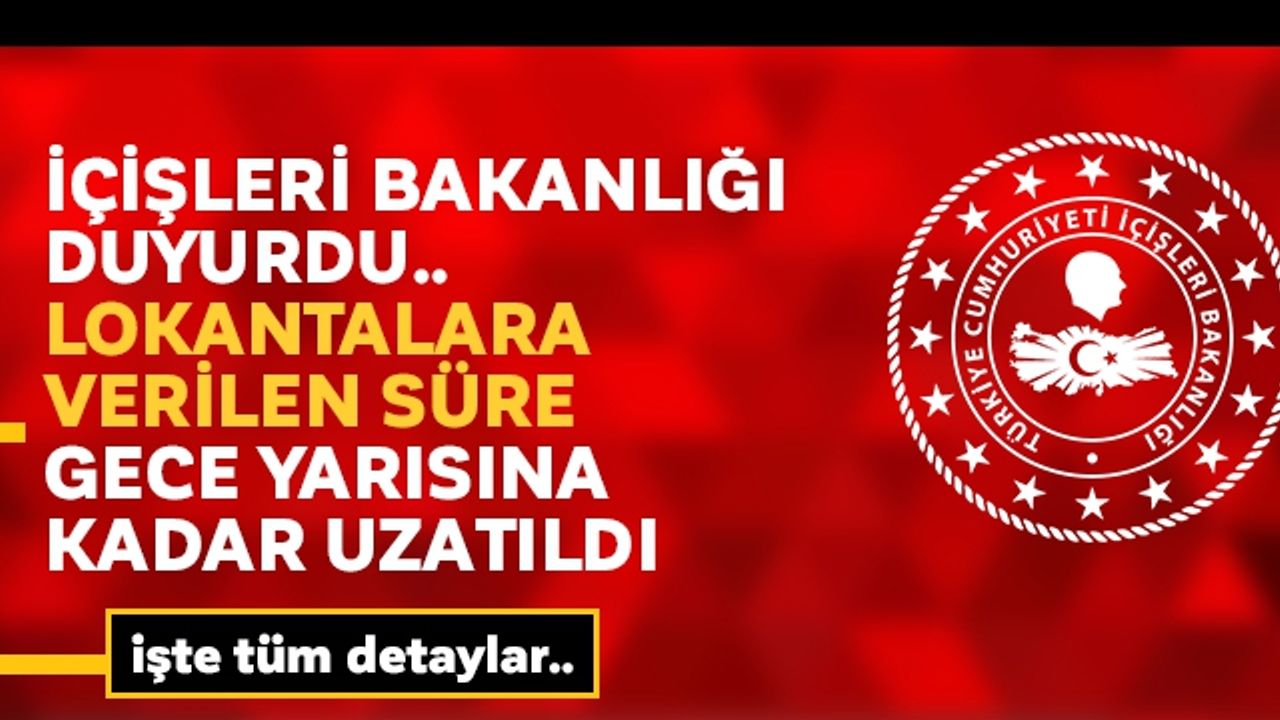 İçişleri Bakanlığı'nın aldığı yeni karara göre, lokantalar hafta içi ve hafta sonu saat 10.00 ila 24.00 arası paket servis yapabilecekler.