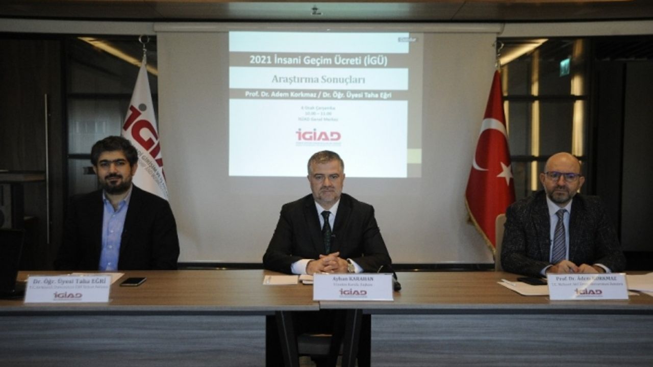Türkiye İktisadi Girişim ve İş Ahlakı Derneği (İGİAD) İnsani Geçim Ücreti Tespit Komisyonu her yıl Aralık ayında yaptığı araştırmanın sonuçlarını kamuoyuyla paylaştı. İGİAD tarafından yapılan, ortalama büyüklükte bir ailenin geçinebileceği aylık asgari ücreti esas alan araştırmaya göre, 2021 yılı insani geçim ücreti İstanbul için 4 bin 134 lira oldu. Aynı araştırmaya göre 2021 yılı İnsani Geçim Ücreti Türkiye ortalaması ise 3 bin 285 lira olarak açıklandı.
