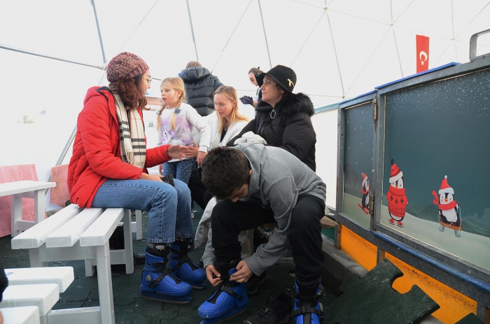 Kuşadası Belediyesi'nin kentteki sosyal hayatı canlandırmak amacıyla hizmete soktuğu buz pateni pistine ilgi yoğun oldu. İsmail Cem Dostluk ve Barış Meydanı'nda kurulan piste çocuklarıyla birlikte gelen aileler, buzda kaymanın keyfini doyasıya yaşadı.