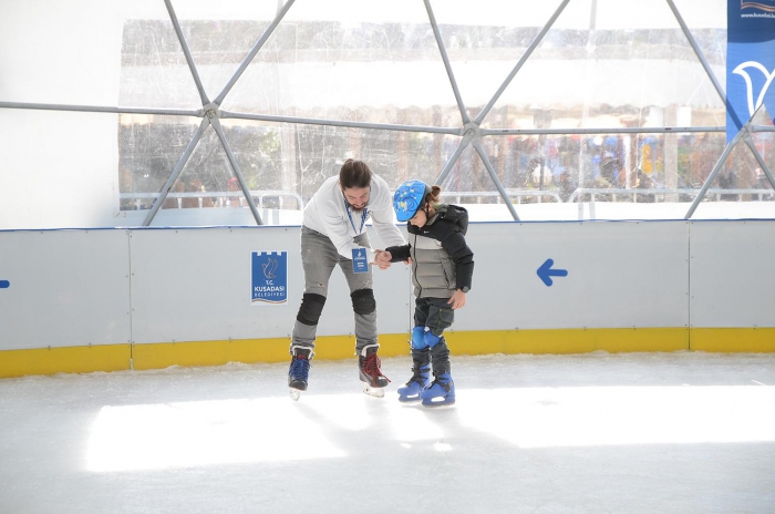 Kuşadası Belediyesi tarafından ilçe halkını kış sporlarıyla tanıştırmak ve kentteki sosyal hayatı hareketlendirmek için açılan buz pateni pistine, Kuşadalılar büyük ilgi gösterdi. İsmail Cem Dostluk ve Barış Meydanı'nda toplam 300 metrekarelik alana kurulan pisti ziyaret eden aileler, uzman eğitmenler gözetiminde çocuklarıyla birlikte buz pateni yapmanın keyfini doyasıya çıkardı. Su ve elektrik kullanımının çok az olması nedeniyle çevre dostu olarak da nitelendirilen pistin 6 hafta boyunca 12:00-20:00 saatleri arasında kullanıma açık olduğu belirtildi.