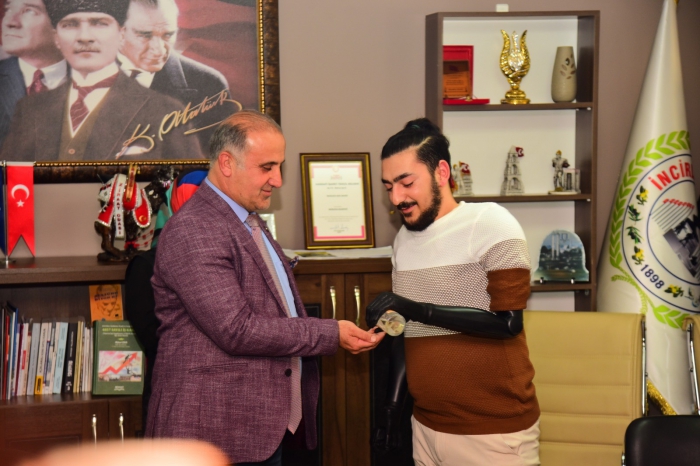 Biyonik protez kollarına kavuşan Samet Aktepe'yi belediye bünyesinde işe alacaklarını kaydeden İncirliova Belediye Başkanı Aytekin Kaya, 'Samet'i ilk gördüğümde çalışma arkadaşlarımızdan konunun araştırılmasını istedim. Hikayesini duyunca çok etkilendim ve kendisini evinde ziyaret ederek geçmiş olsun dileklerimi ilettim. Sonrasında Samet'in biyonik protez kollarına kavuşması için girişimlerde bulunduk. Aydın Valiliği'ne yazı yazarak yardım kampanyası başlatılmasını sağladık. Sağ olsun Aydın Valimiz Hüseyin Aksoy bu konuda bize destek oldu. Sağ olsun sanatçı Haluk Levent'in başkanı olduğu AHBAP isimli yardım derneği de desteklerini esirgemedi. Gerekli paranın toplanması için sayelerinde kalan son kısmı hızlı bir şekilde tamamladık. Bu süreçte en ufağından en büyüğüne kadar destek olan herkesten Allah razı olsun' ifadelerini kullandı. Başkan Kaya konuşmasının sonunda Samet'e jest yaparak kendisini İncirliova Belediyesi Basın Yayın ve Halkla İlişkiler Müdürlüğü bünyesinde işe alacaklarını duyurdu.