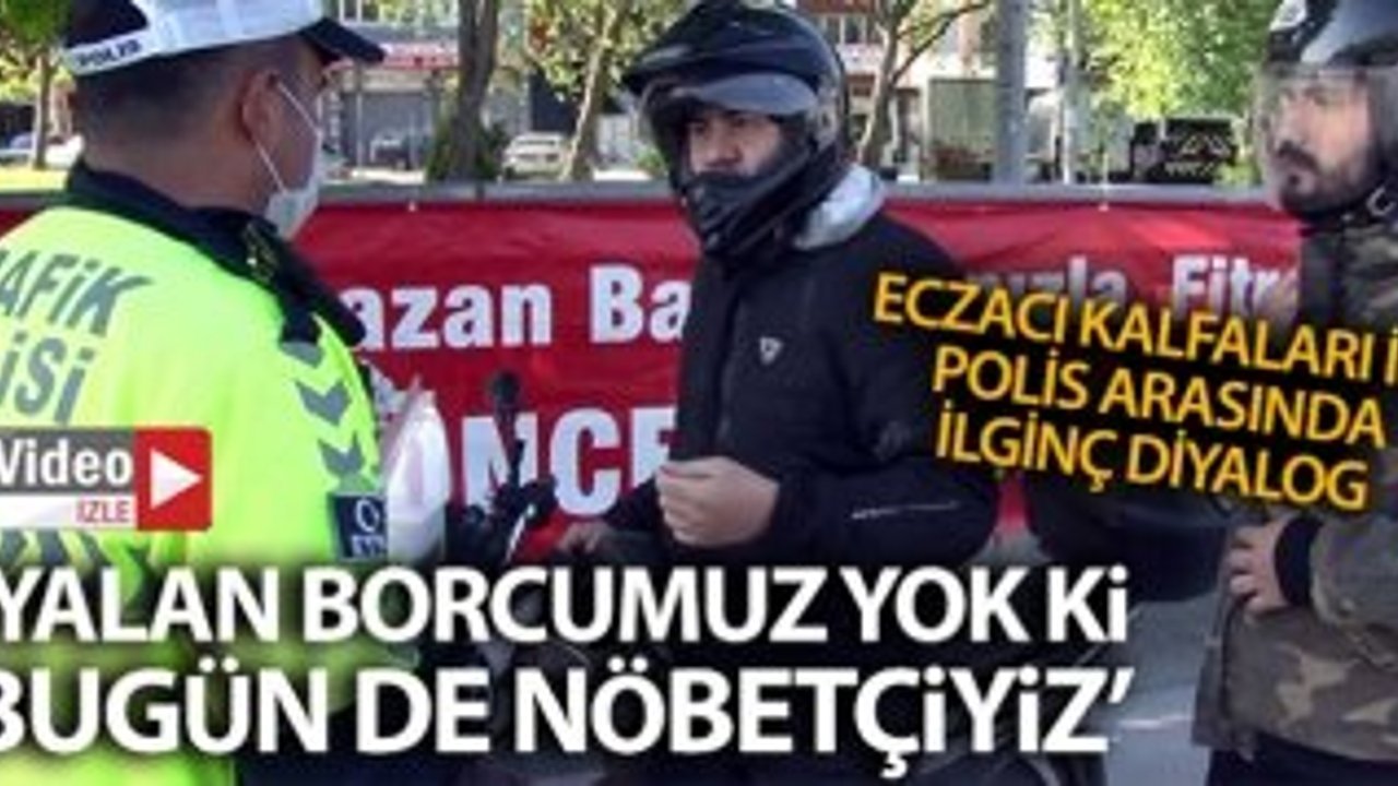 Sokağa çıkma kısıtlaması kapsamında yapılan denetimlerde eczacı kalfası olduğunu söyleyen 2 kişi yanlarında çalışma izin belgesi olmadığı için ceza yedi. Ceza yiyen vatandaşlar biri, 'Biz sağlıkçıyız ağabey ben 27 yıldır eczacı kalfasıyım, yalan borcumuz yok ki bugünde nöbetçiyiz' diyerek tepki gösterdi.