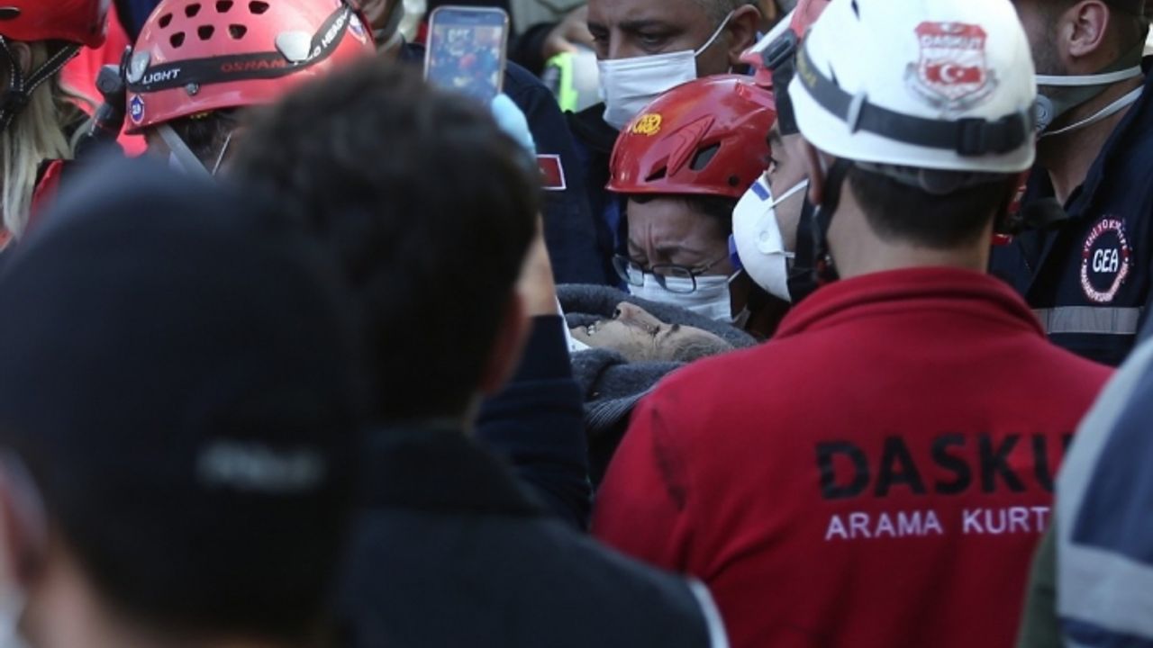 Merkez üssü İzmir´in Seferihisar ilçesi olan 6.6 büyüklüğündeki depremin ardından İzmir´in Bayraklı ilçesindeki 8 katlı ve 21 daireli Doğanlar Apartmanından depremden 23 saat sonra anne ve 4 çocuğundan 3´ü çıkarıldı.