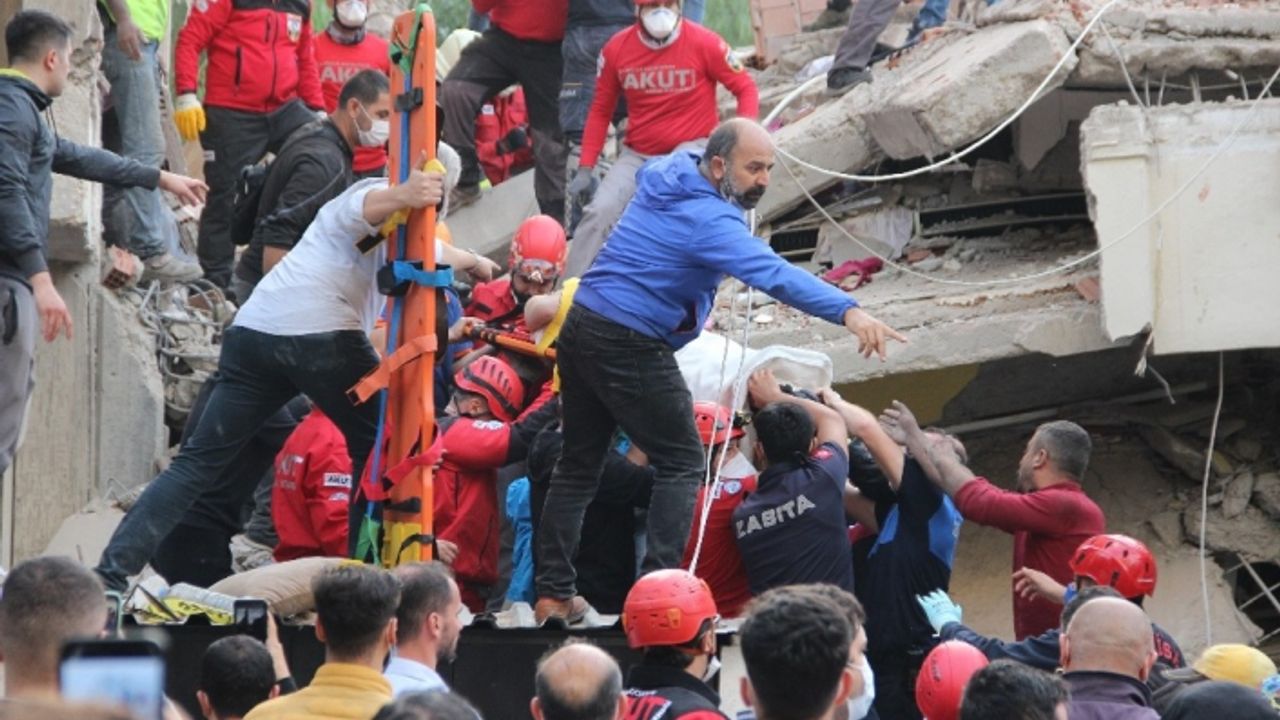 Merkez üssü Seferihisar olan 6.7 büyüklüğündeki depremde İzmir´in Bayraklı ilçesinde yıkılan 7 katlı binada arama kurtarma çalışmaları devam ederken binadan bir erkek vatandaş yaralı olarak kurtarıldı. Çok sayıda ekibin müdahale ettiği apartmanda çalışmalar devam ediyor.