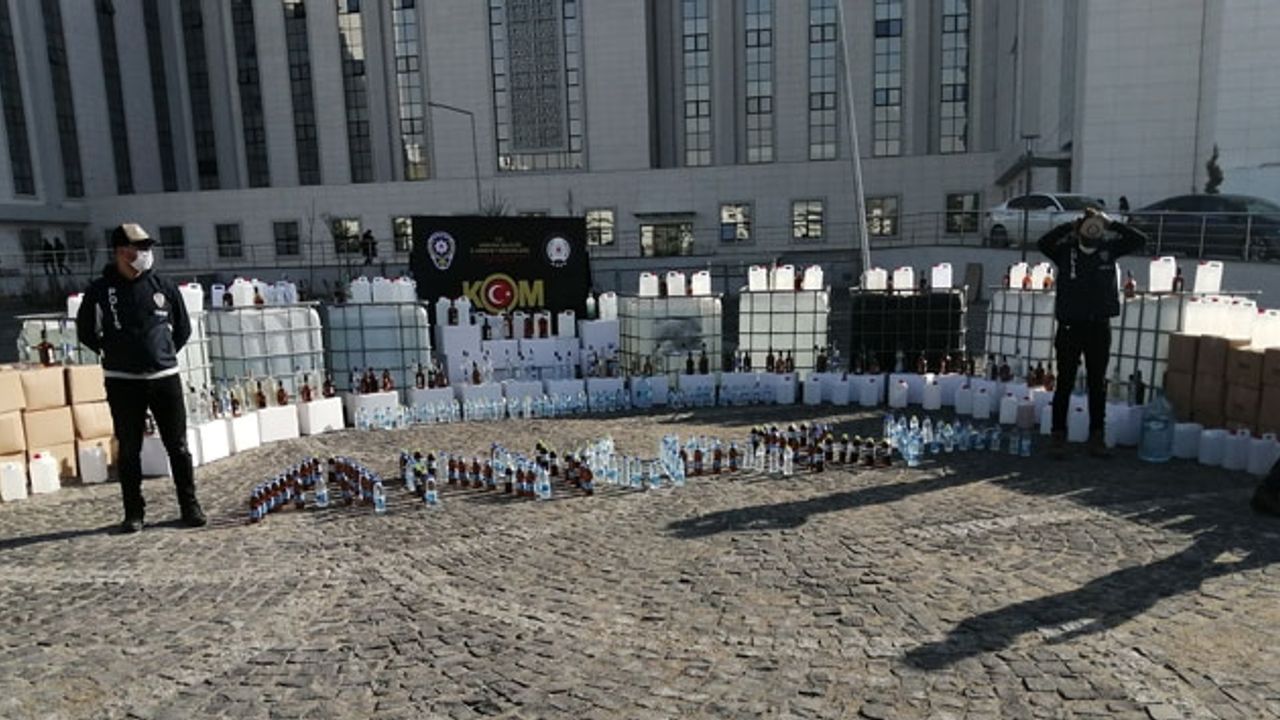 30 şüphelinin gözaltına alındığı operasyonlarda 20 ton 550 litre etil alkol, 252 şişe sahte alkollü içki, 6 bin 82 adet TAPDK bandrolü ve alkollü içki şişe etiketi, 776 adet alkollü içki yapımında kullanılan yan ürün, 32,5 litre sahte alkolü içki yapımında kullanılan yan ürün, 1 adet damıtma aracı 3 adet ruhsatsız tabanca, tabancalara ait şarjörler, 11 adet dolu fişek ve az miktarda uyuşturucu madde ele geçirildi. El konulan malzemeler basına gösterildi.