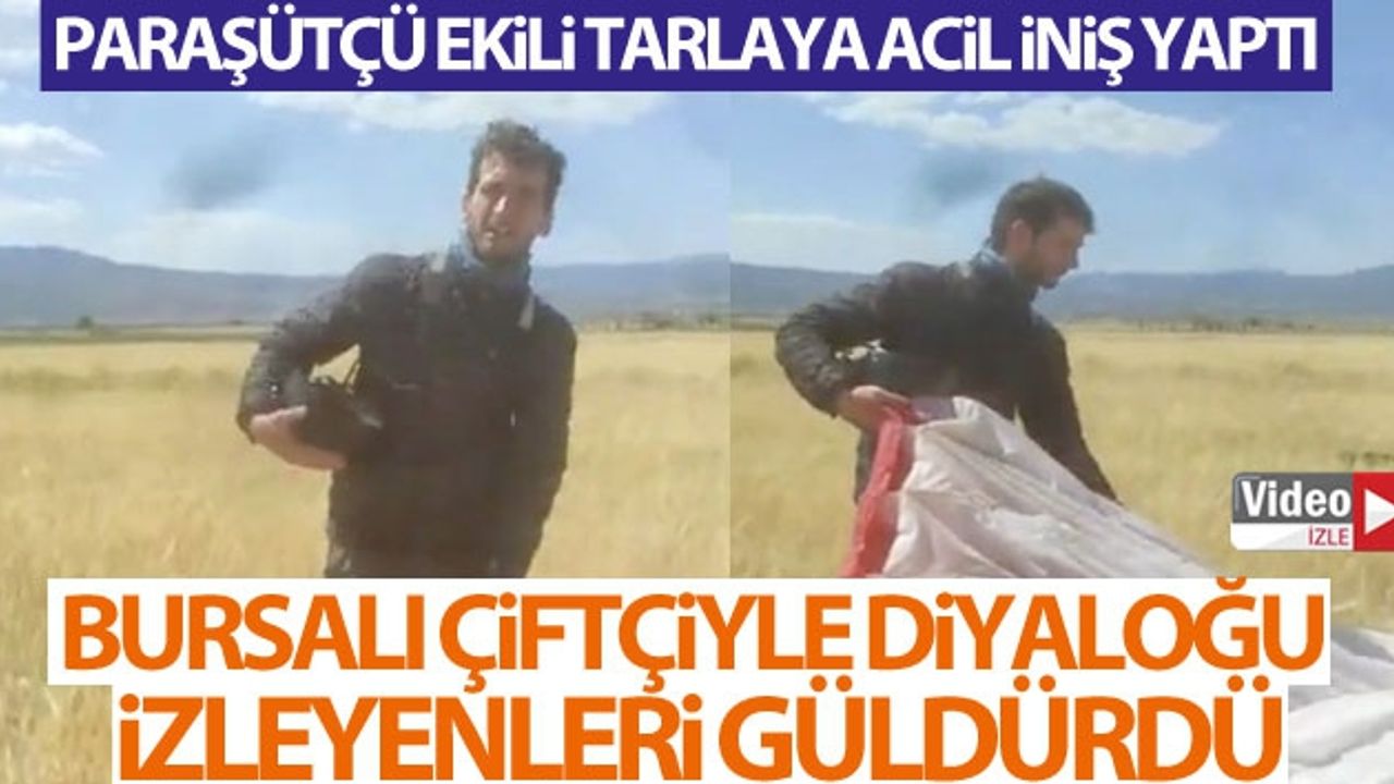 Kanada uyruklu yamaç paraşütçüsü Denizli Çameli Yaylacık Dağı'ndan dün sabah atlayış yaptı. Paraşütçü, yaklaşık 110 kilometre uzaklıktaki Burdur'un Yassıgüme köyünde Kazım Öz'e ait arpa ekili tarlaya acil iniş yaptı. Ekili alanda paraşütçüyü gören Öz ise, ilk başta neye uğradığını şaşırdı ardından paraşütçünün yanına giderek cep telefonuyla sosyal medyadan canlı yayın yapmaya başladı. Burdur şivesiyle konuşan Öz ile az Türkçesi bulunan paraşütçünün diyalogları ise güldürdü.