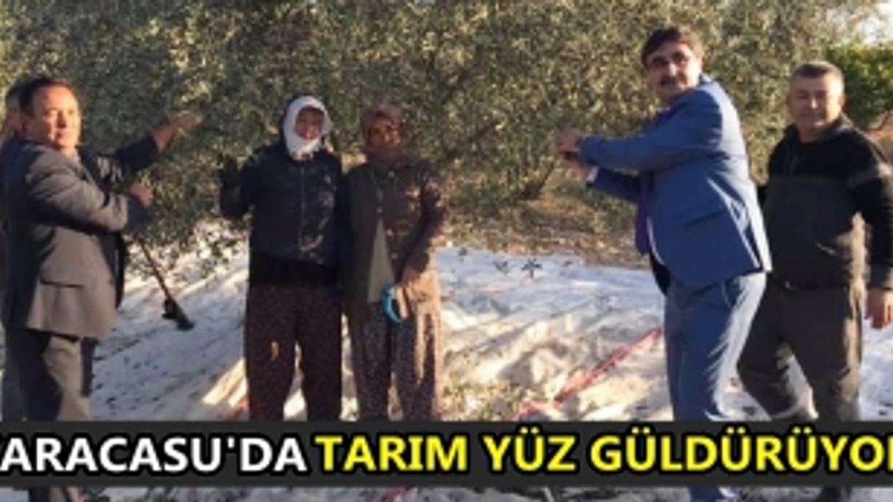 Tarlada işçilerle birlikte zeytin hasadı yapan Karacasu Belediye Başkanı Zeki İnal, 'Çevre il ve ilçelerimizden zeytin toplamak için buraya işçiler geliyor. İşçiler ve üreticilerle sohbet ederek ürünler hakkında bilgi aldık. Edindiğimiz izlenimlere göre ilçemiz bu sene en iyi tarım yıllarından birini yaşıyor. Zeytin ve zeytinyağındaki rekolte, kalite ve fiyatlar üreticiyi memnun ediyor. İncir ve Nar'da da durum aynı. Üreticiler hem rekolte, hem kalite hem de fiyatlardan oldukça memnun olduklarını ifade ettiler. Bu memnuniyet bizleri de sevindirdi. Çiftçilerimize bereketli bir sezon diliyorum' dedi. Başkan İnal daha sora mahallede bulunan bir zeytinyağ fabrikasını ziyaret etti.