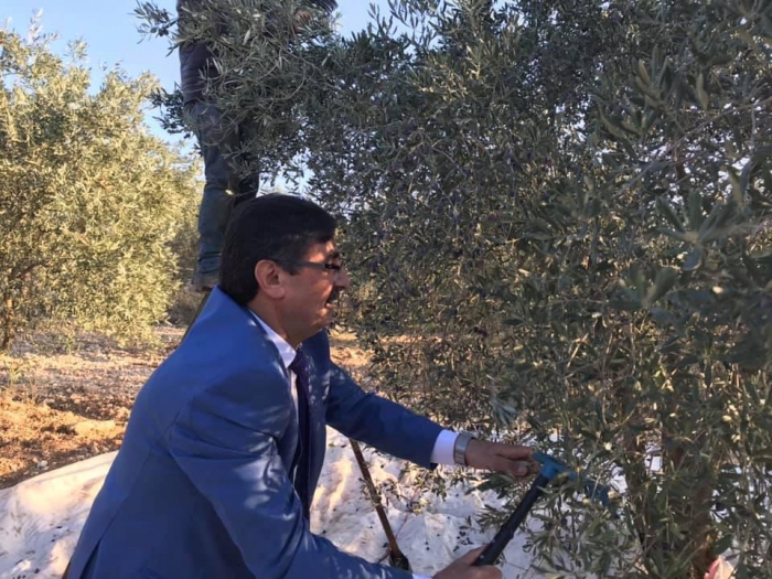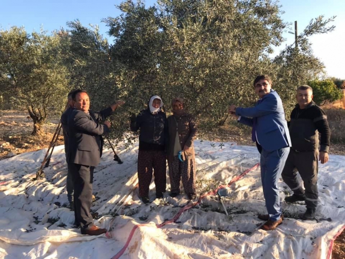 Tarlada zeytin hasadı yaptı
