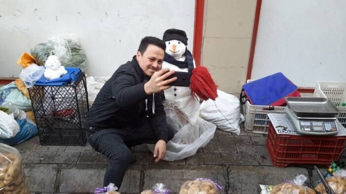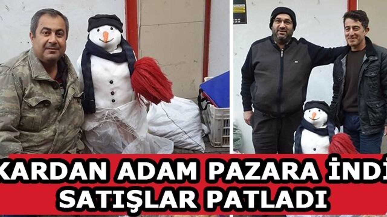 Aydın'da Paşayaylası Karaköy Mahallesi'nden topladığı karlar ile yaptığı kardan adamı tezgahına koyan pazarcı Harun Bakar satış rekoru kırdı.