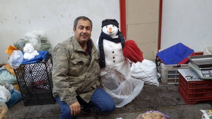 Kardan adamla pazara renk katmak istediğini söyleyen pazarcı Harun Bakar, 'Malumunuz şehir merkezimize kış aylarında kar yağmıyor. Ben de yüksek kesimlerden getirdiğim kar ile pazara renk katmak istemiştim. Bu kadar ilgi göreceğini tahmin etmiyordum. Kardan adamı gören vatandaşlar hem onunla fotoğraf çektirdi hem de tezgahımdan alış veriş yaptı. Kardan adam sayesinde ürünlerimi erkenden bitirdim. Bundan sonra ara ara tekrarlamayı düşünüyorum' dedi.