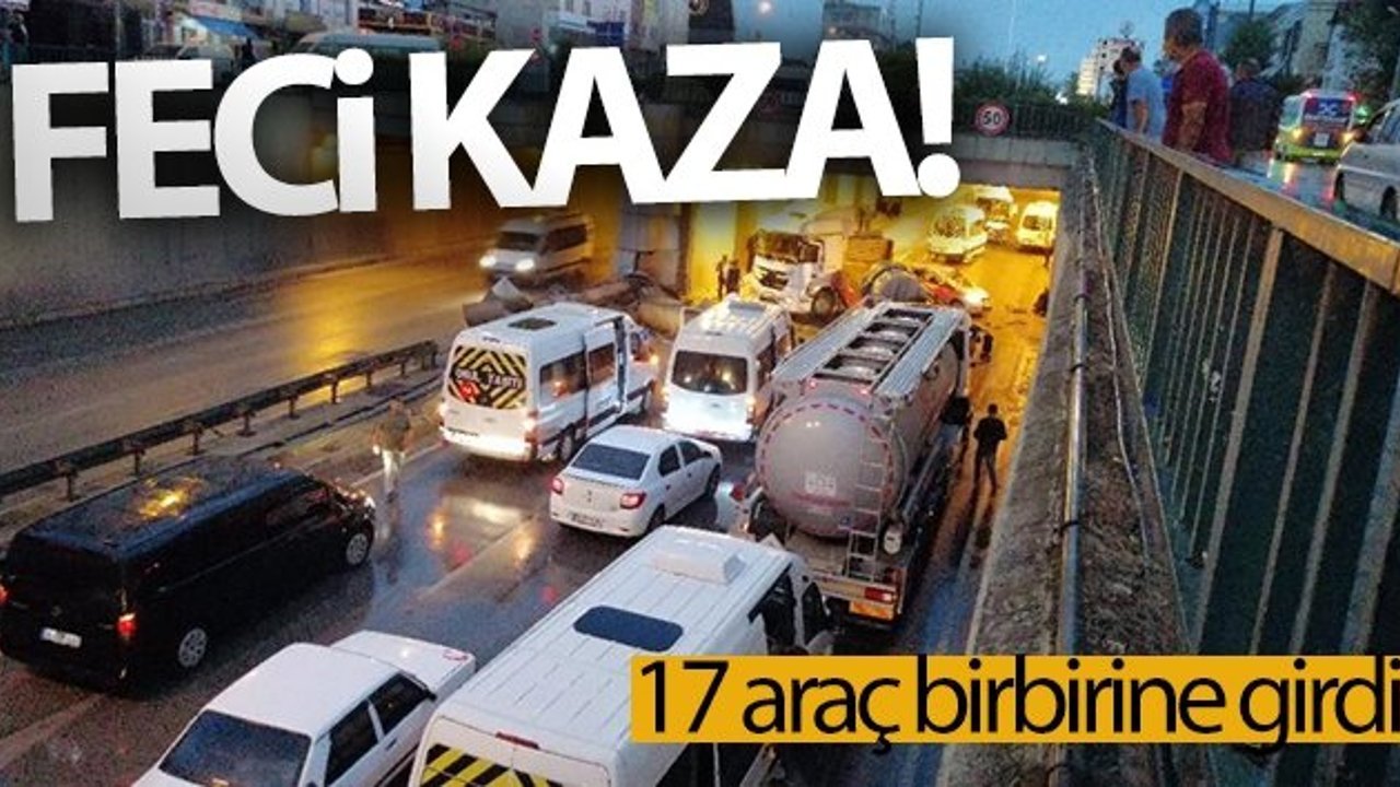Derince tüneli içinde ters istikamete dönen minibüsü görerek frene basan aralarında tırların da olduğu 16 araç da duramayarak birbirine girdi. 4 kişinin yaralandığı kazaya karışan araçlardaki sürücü ve yolcular, can güvenlikleri için araçlarını terk ederek yol kenarına çıktılar.
