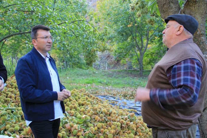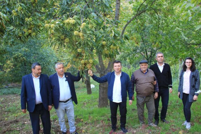 Kaymakam Şahin'in Ortakayacık'taki kestane hasat programına Efeler Tarım İlçe Müdürü Mehmet Esen, Ziraat Odası Başkanı Mehmet Kendirlioğlu, Köy Muhtarı Avni Eroğlu, ihtiyar heyeti köylüler ve ziraat mühendisleri katıldı.