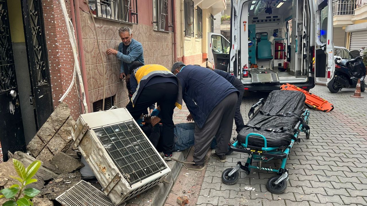 Düşme sırasında üzerine klima motoru ve beton parçalarının da isabet ettiği F.S. yaralandı. Çevredeki vatandaşların ihbarı üzerine olay yerine sağlık ve polis ekipleri sevk edildi.