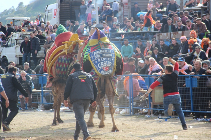 Köşk Belediyesi öncülüğünde gerçekleştirilen güreş, panayır havasında geçerken, 170 deve kıyasıya mücadele etti.