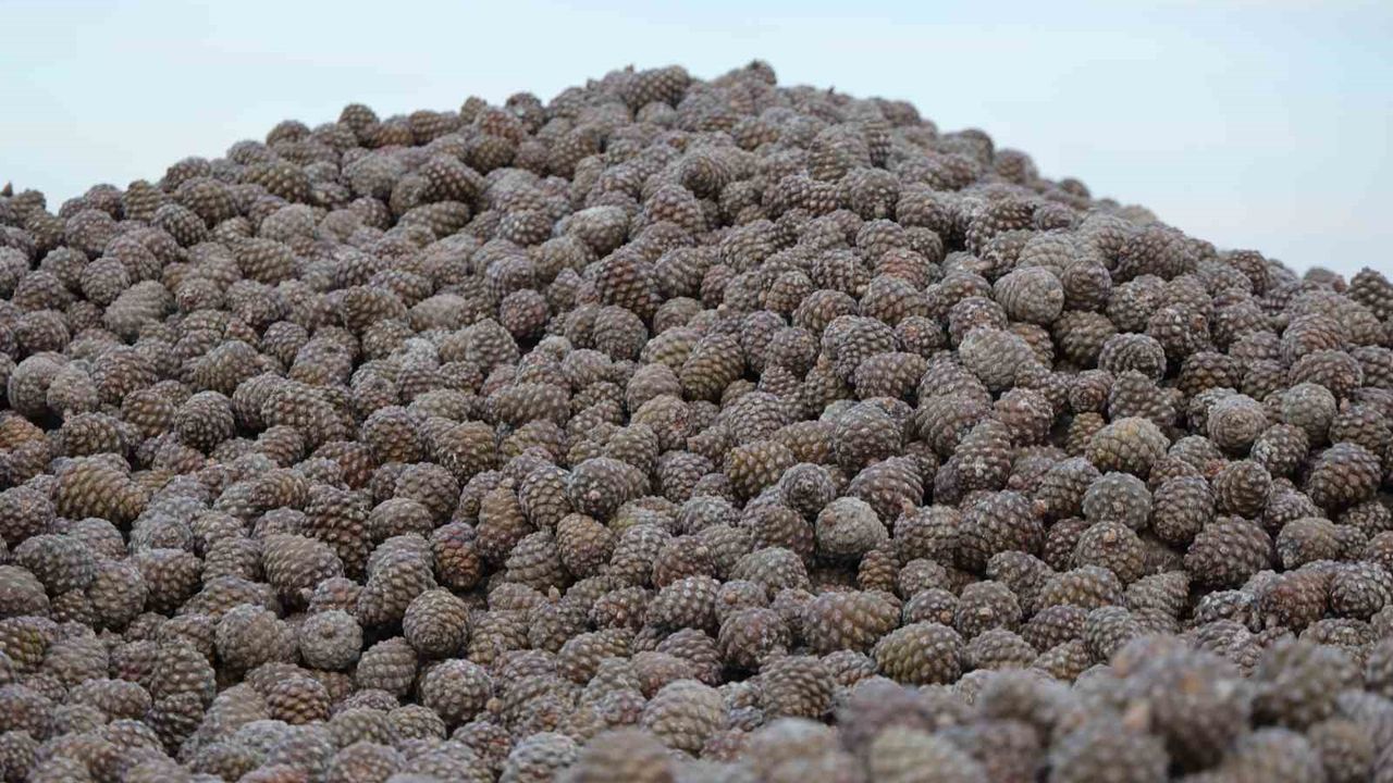 Türkiye'nin önemli ihracat ürünlerinden olan künarda (Çam fıstığı), kuraklık sebebiyle rekolte düşüklüğü yaşanırken, bin bir zorlukla toplanan kozalakların işlenmesi için fabrikalarda yoğun mesai süreci başladı.