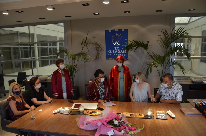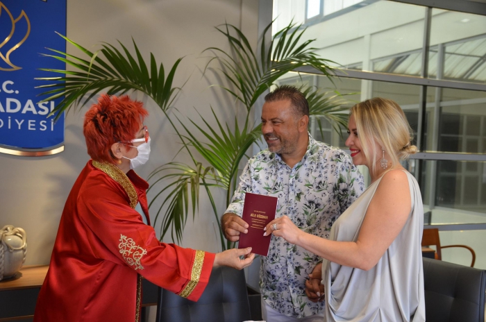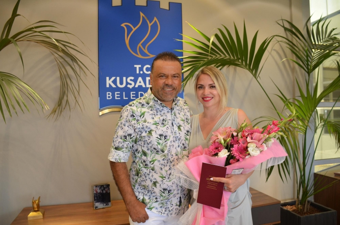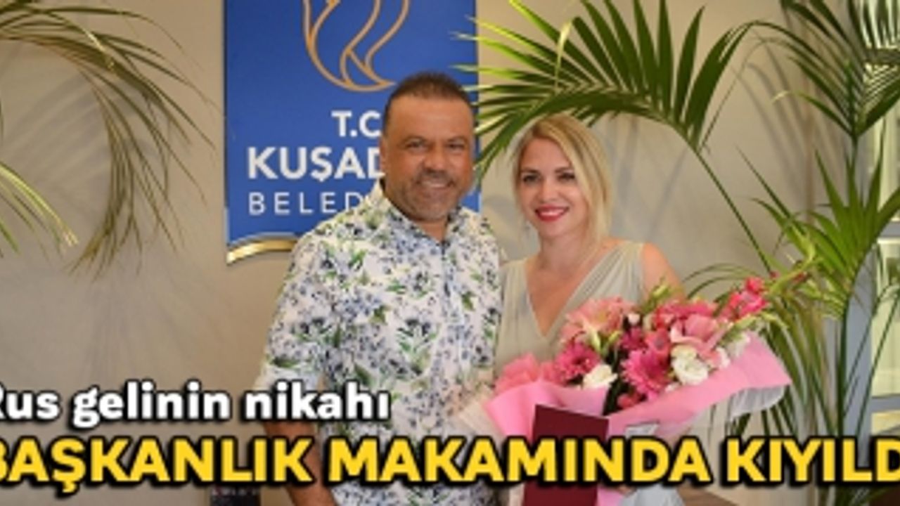 Dünya evine girmek için Kuşadası Belediyesi’ne müracaat eden Rusya doğumlu Dina Zakırova ile Hasan Hakan Acıtaş’ın nikahı başkanlık makamında kıyıldı. Çiftin nikah akdini Belediye Başkan vekili Tibet Özer gerçekleştirdi.