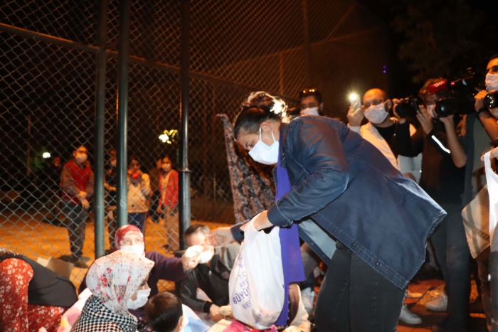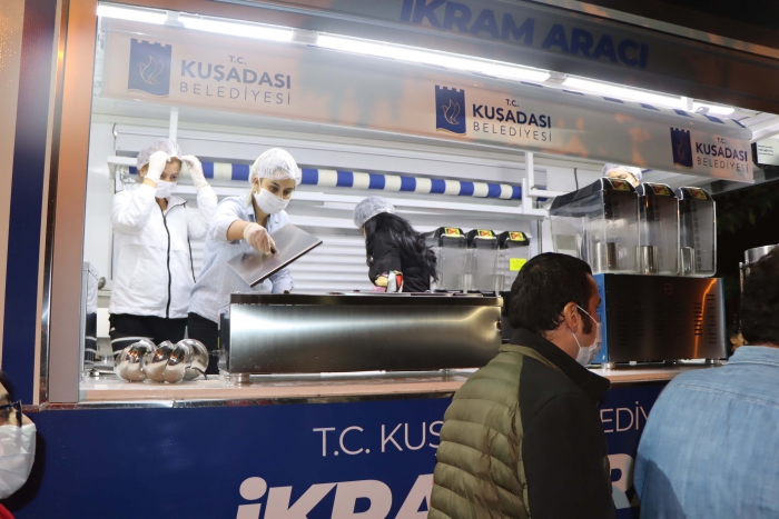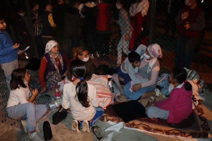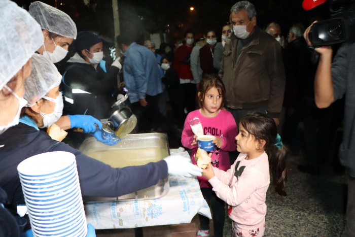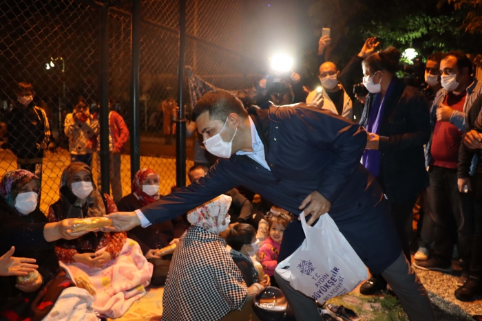 Geceyi sokakta geçiren Kuşadalılar için Aydın Büyükşehir Belediyesi ile Kuşadası Belediyesi çadırlar kurup, sıcak çorba dağıttı.