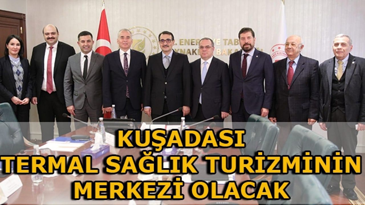 Başkan Ömer Günel bakanlık ziyareti ilgili olarak şu bilgileri verdi. 'JKBB'nin2019 yılı ilk encümen toplantısını Ankara'da yapmıştık. Dün ise Enerji ve Tabii Kaynaklar Bakanımız Fatih Dönmez'i makamında ziyaret ettik. Aydın ilinin jeotermal enerji açısından zengin bir potansiyele sahip olduğunu özellikle Kuşadası'nın termal turizm konusunda zengin mineral yapısı ve uygun kuyu suyu sıcaklığı ile ön plana çıktığını bakanımızın bilgisine sunduk. Mevcudumuz da Davutlar – Güzelçamlı bölgemizde 3 adet kuyumuz var. Bu kuyulardan 45- 50 derece sıcaklıkta zengin mineralli yeraltı suyumuz var. Ancak yapılan fizibilite çalışmalarında yeni kaynaklar tespit etti. Termal turizm için Kuşadası'nın sahip olduğu potansiyelini değerlendireceğimiz projelerimizi Sayın Bakanımız Fatih Dönmez ile paylaştık. Sadece termal turizmde kullanılmak üzere yeni kuyuların açılması için bakanlığımıza başvuruda bulunacağız. Bölgenin jeotermal potansiyelini doğru kullanmamız halinde ülkemizin yeni bir termal sağlık turizm merkezine kavuşacağı hususunda sayın bakanımız ile görüş birliğine varıldı. Bakanımız bu konuda bizden proje beklediğini önemli vurguladı. Sayın Bakanımız Dönmez Kuşadası'nın sahip olduğu jeotermal kaynaklarla ilçede turizmi 12 aya çıkarabileceklerini ifade ederek, bizlerle bu konuda görüş birliğinde olduğunu ifade etti.