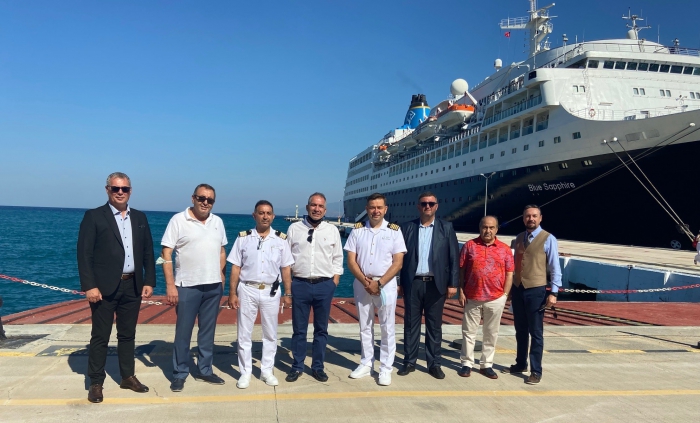 Seremoniye katılan Kuşadası Ticaret Odası Yönetim Kurulu Başkanı Serdar Akdoğan, Meclis Başkanı Bülent İlbahar ve Meclis Başkan Yardımcısı Tolga Erdem; Ege Port Kuşadası Genel Müdürü ve Global Ports Holding Doğu Akdeniz Bölge Direktörü Aziz Güngör, kruvaziyer gemisi Blue Sapphire'i işleten Selectum Blu Cruises CEO'su Necdet Uçarlar ve Anex Tour Kruvaziyer Operasyon Direktörü Kunter Kurtoğlu ile bir araya geldi. Pandemi nedeniyle duran kruvaziyer gemilerinin tekrar gelmeye başlamasından mutluluk duyduklarını söyleyen Kuşadası Ticaret Odası Yönetim Kurulu Başkanı Serdar Akdoğan, 'Uzun bir aradan sonra ilçemize gelen sezonun ilk gemisi tüm Kuşadası için hayırlı ve bereketli olsun. Bugün limanımızda gemi görmenin sevincini yaşıyoruz. Yıl sonuna kadar limanımıza 13 sefer yapması planlanan geminin, zorlu geçen iki yıl sonrası esnafımızın yüzünüzü güldürmesini umuyoruz' dedi. Akdoğan; geminin işletmeci firma yetkililerine, Kruvaziyer gemilerin Kuşadası limanına gelmesi için her türlü desteği vermeye hazır olduklarını ve takipçi sayısı milyonu geçen sosyal medya sayfalarından, doğru hedeflere sponsorlu çıkarak kruvaziyer turizme tanıtım desteği vereceklerini söyledi.