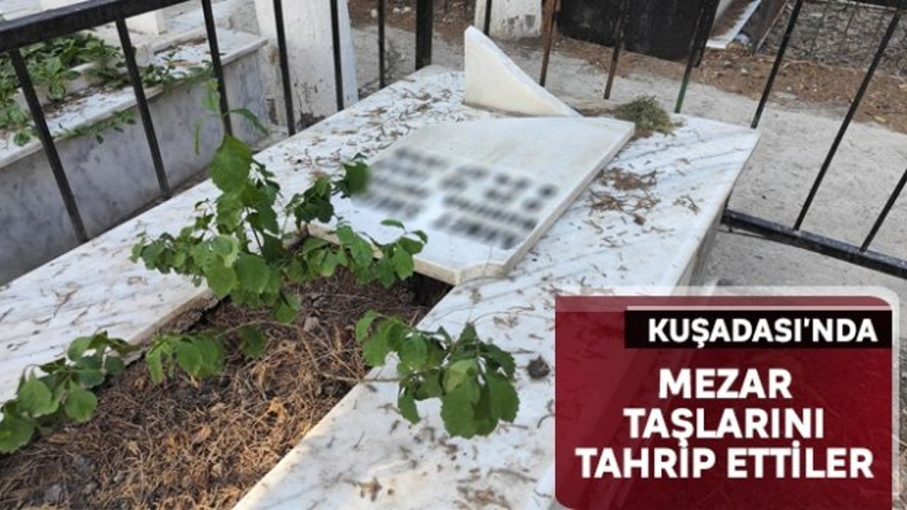 Aydın'ın Kuşadası ilçesi kent merkezinde bulunan Adalızade Mezarlığı'ndaki mezar taşları kimliği belirsiz kişi veya kişilerce gece saatlerinde tahrip edildi.
