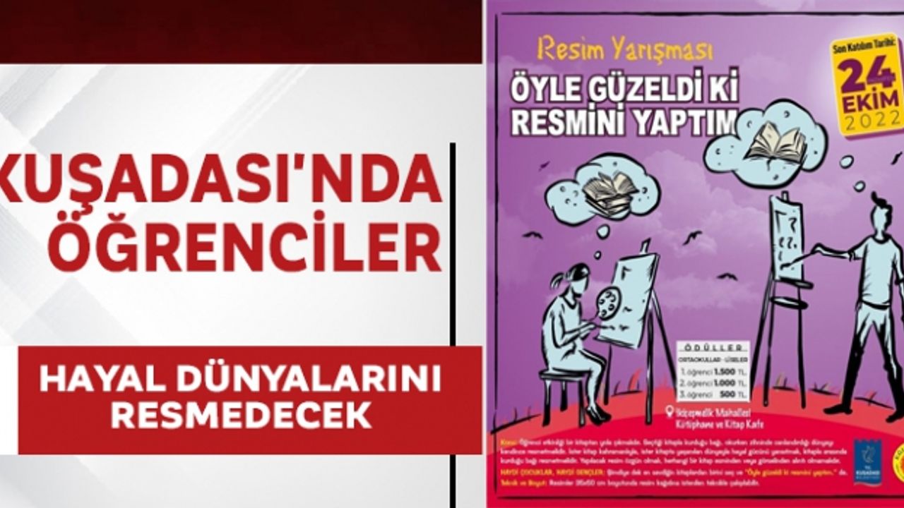 Kuşadası Belediyesi tarafından düzenlenen ortaokul ve lise öğrencileri için resim yarışmasında öğrenciler, okuyup etkilendikleri bir kitabın zihinlerinde oluşturduğu dünyayı resmedecek.