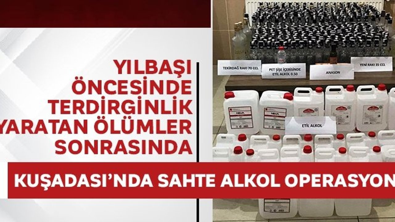 Edinilen bilgiye göre, Kuşadası'nda M.A., R.K., ve M.L.Ö içtikleri içkiden zehirlenerek hastaneye kaldırıldı. Yapılan değerlendirmelerde kendisi de sahte alkolden zehirlenen M.L.Ö'nün Güzelçamlı Mahallesi'ndeki evinde yapılan aramada, 447 adet doluma hazır alkol şişesi, 2 adet 250 ml anason aroma verici, 36 adet bidon içerisinde etil alkol ele geçirildi. M.L.Ö. hakkında yasal işlem başlatıldı.