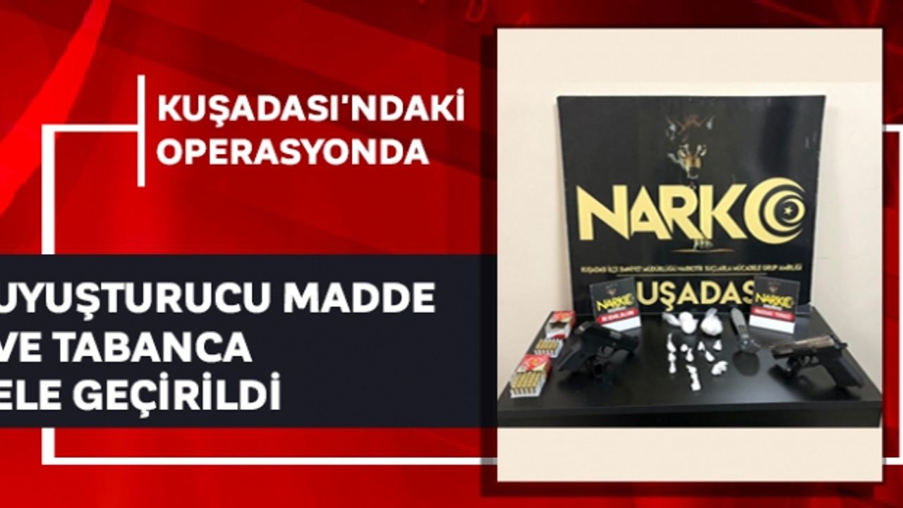 Aydın'ın Kuşadası ilçesinde bir ikamete düzenlenen operasyonda uyuşturucu madde ve tabanca ele geçirilirken, 1 kişi gözaltına alındı.