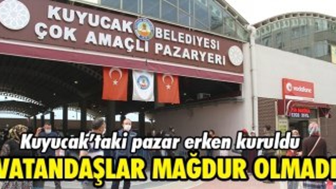Kuyucak'ta, 18-19 Nisan 2020 tarihlerinde uygulanacak olan sokağa çıkma yasağı nedeniyle, 18 Nisan Cumartesi günü kurulacak olan pazar, 15 Nisan Çarşamba günü kuruldu.