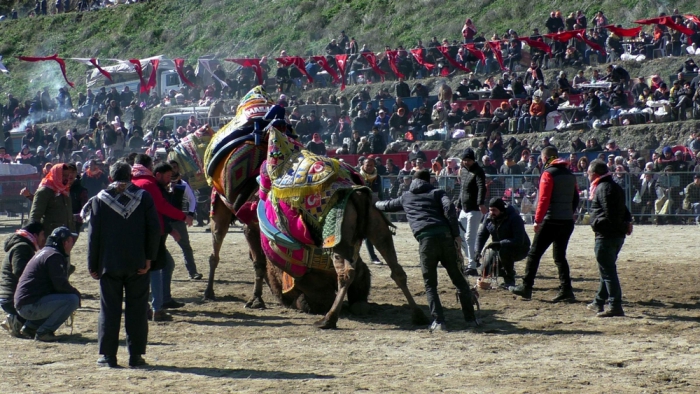 Aydın'ın Kuyucak ilçesinde her yıl geleneksel olarak sürdürülen deve güreşi şenliklerinde Ege, Marmara ve Akdeniz Bölgelerinin ünlü develeri bu kez Elazığ ve Malatya'daki depremzedeler yararına güreş tuttu. Tüm Türkiye'nin mücadele ettiği soğuklar yaşamı olumsuz etkilerken develer ise tam tersine soğuğu görünce kızıştığı için Kuyucak Arenası güzel güreşlere sahne oldu.