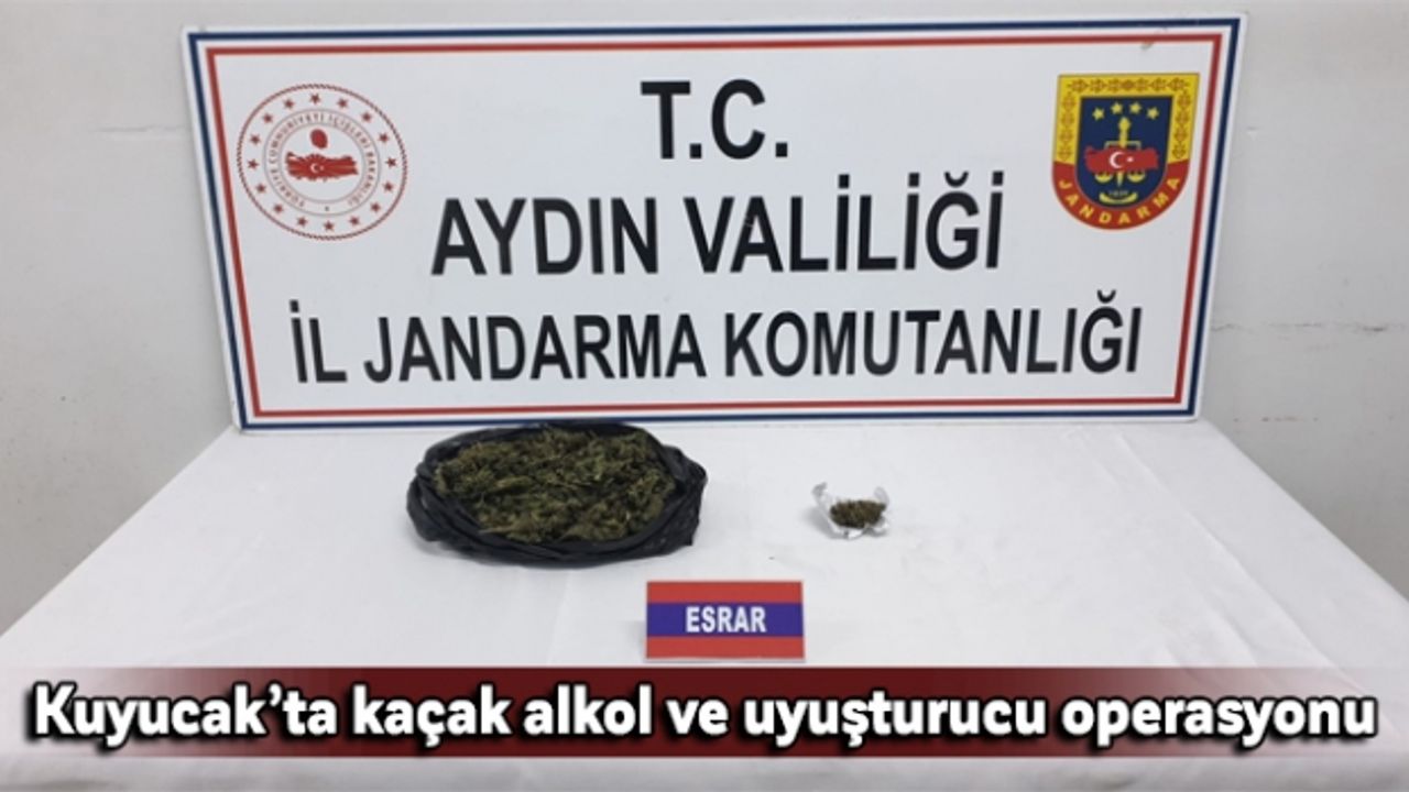 Aydın'ın Kuyucak ilçesinde baskın gerçekleştiren jandarma ekipleri, 1 kişiyi yakalarken, çok sayıda kaçak alkol ve uyuşturucu ele geçirdi.