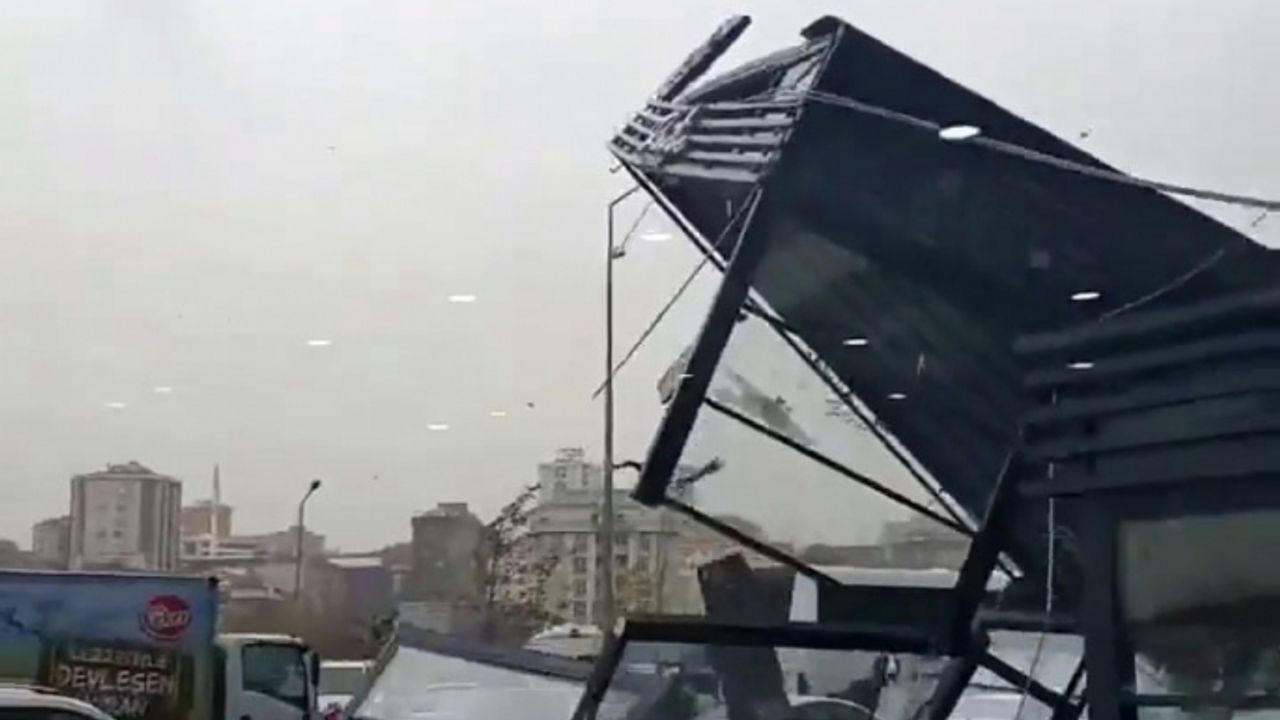 Meteorolojinin uyarıları sonrası lodos İstanbul'da etkili olmaya devam ediyor. Lodos nedeniyle İstanbul'un birçok noktasında çatı uçmaları yaşandı. Bağcılar'da bulunan bir kafenin dış kısmı şiddetli rüzgar nedeniyle yerinden sökülerek uçtu. Kafenin tente kısmının uçtuğu o anlar saniye saniye cep telefonu kamerasına yansıdı.