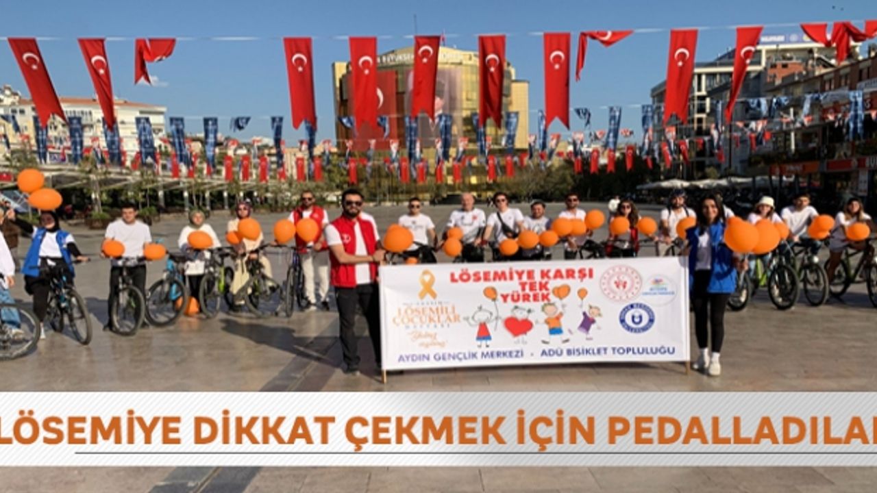 Aydın Gençlik ve SPor İl Müdürlüğü Gençlik Merkezi ile Aydın Adnan Menderes Üniversitesi (ADÜ) öğrencileri lösemiye dikkat çekmek için bisiklet turu gerçekleştirdi. 'Lösemiye karşı tek yürek' sloganı ile bu kez farkındalık oluşturmak için pedallayan gençler, Adnan Menderes Bulvarı üzerinde turladı. Turuncu balonlarla süsledikleri bisikletleri ile kenti turlayan gençlerin farkındalık etkinliği Atatürk Kent Meydanı'nda sona erdi.