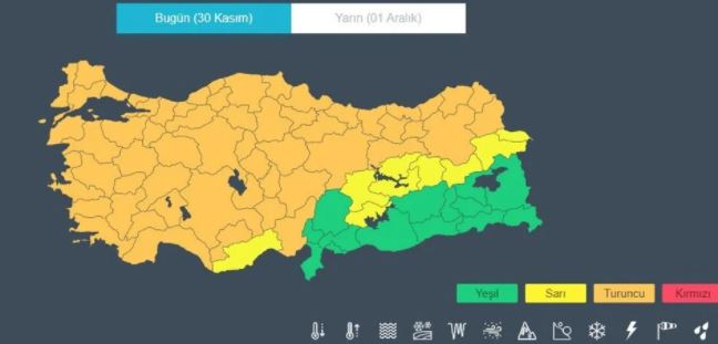 MGM'den 58 il için turuncu 9 il içinde sarı kodlu uyarı yapıldı.