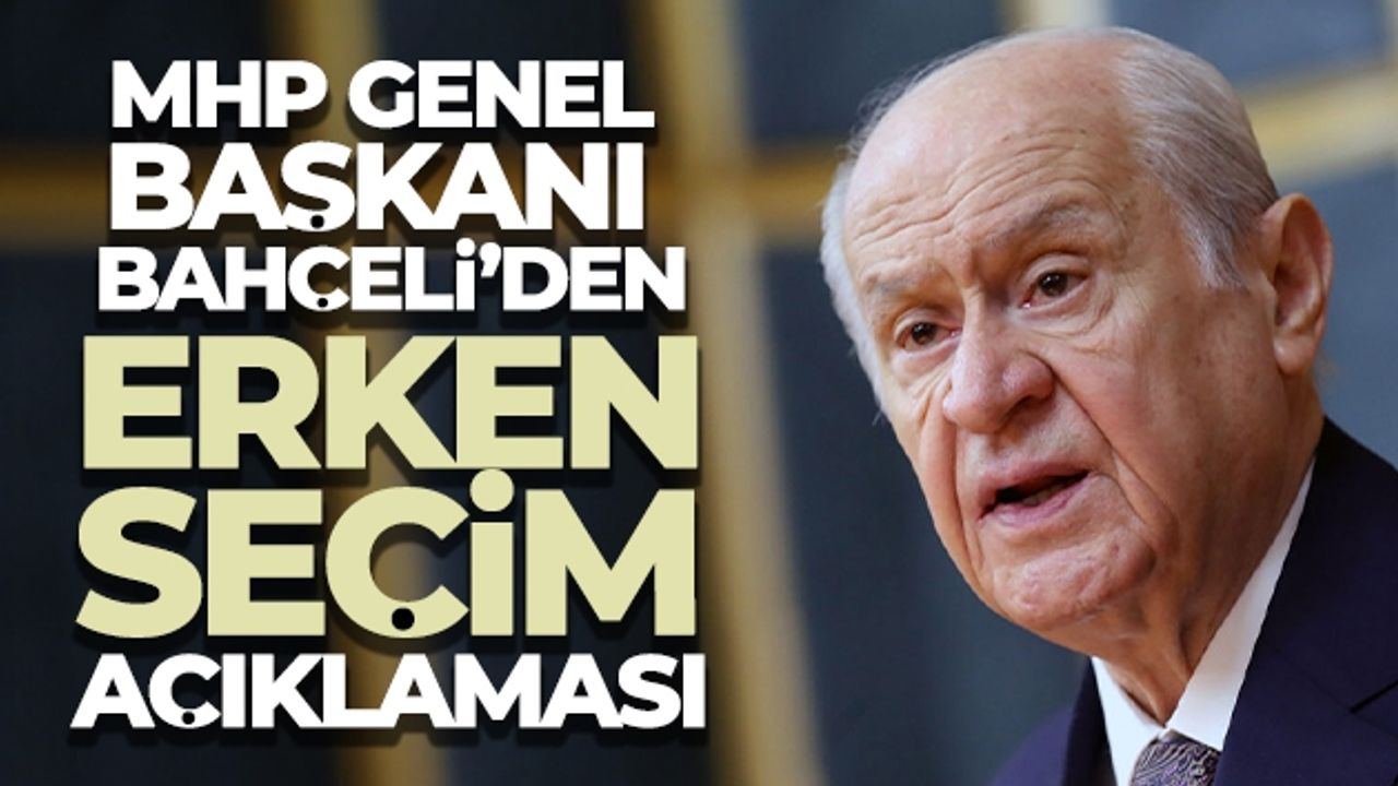 Milliyetçi Hareket Partisi (MHP) Genel Başkanı Devlet Bahçeli, Cumhurbaşkanlığı ve Milletvekilliği Genel Seçimleri'ne ilişkin, 'İster zamanında yapılsın isterse de erkene alınsın, biz iki seçeneğe de varız ve hazırız. Bu kapsamda seçim kararının alınabilmesi için ya 360 milletvekilinin evet oyuyla Meclis kararı gereklidir ya da Cumhurbaşkanı'mızın anayasal yetkisine dayanarak Türkiye'yi seçime götürmesi lazımdır' dedi.